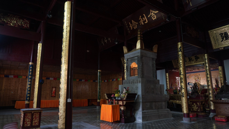 1640年),民国二十二年(1933年)方丈圆瑛禅师重建。高平屋,面广33米,进深19米。2018年方丈诚信大和尚恢复舍利塔一座。殿后佛龛内,供奉玉质卧佛一尊。