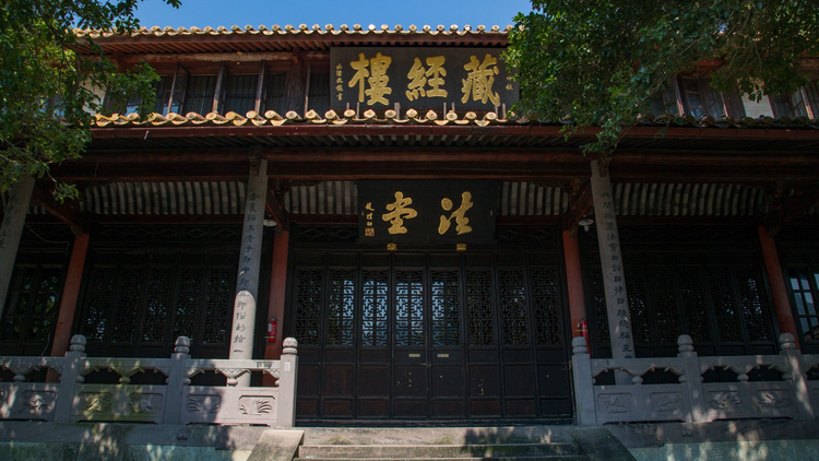 1916年重修,楼上为藏经楼,中悬民国第五任大总统徐世昌所书“天龙拱护”之匾。楼内藏经二万余卷,其中包括乾隆版大藏经。楼下法堂,为寺院举行重要法事活动,左右两壁嵌有贯休和尚所绘之十六尊者石刻。殿后有“供奉泉”。