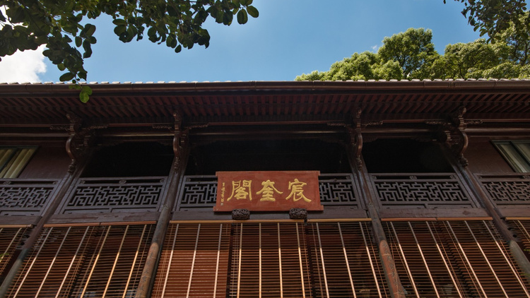 始建于宋熙宁三年(1070)。大觉怀琏任阿育王寺住持,宋仁宗赐书颂、宋英宗赐手诏,信众集资出力,建成楼阁后珍藏御书,名宸奎阁。现为清代建筑,上下共十间高9米,面积173.4平方米。有苏轼撰并书的《宸奎阁碑铭》记其历史。