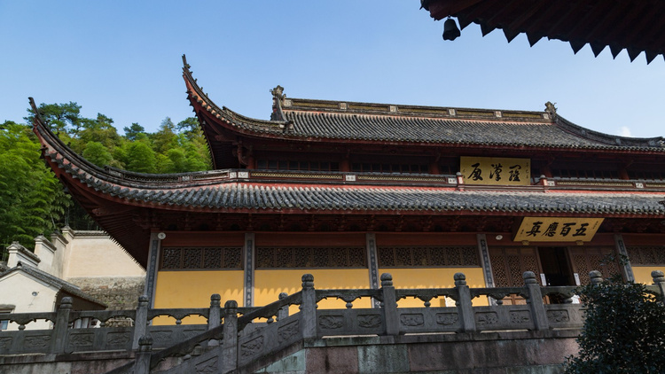 平方米。中奉阿弥陀佛,后供观音菩萨。五百罗汉雕像巧夺天工,神态奇妙,具有宁波当地风格,是民间信众数罗汉祈福的圣地。