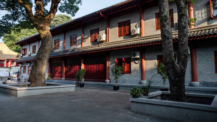 年重建,西塔北侧,楼房上下共四十八间四弄,四合院型,环境幽雅,住宿条件较好,为寺院重大法会接待香客居士住处。